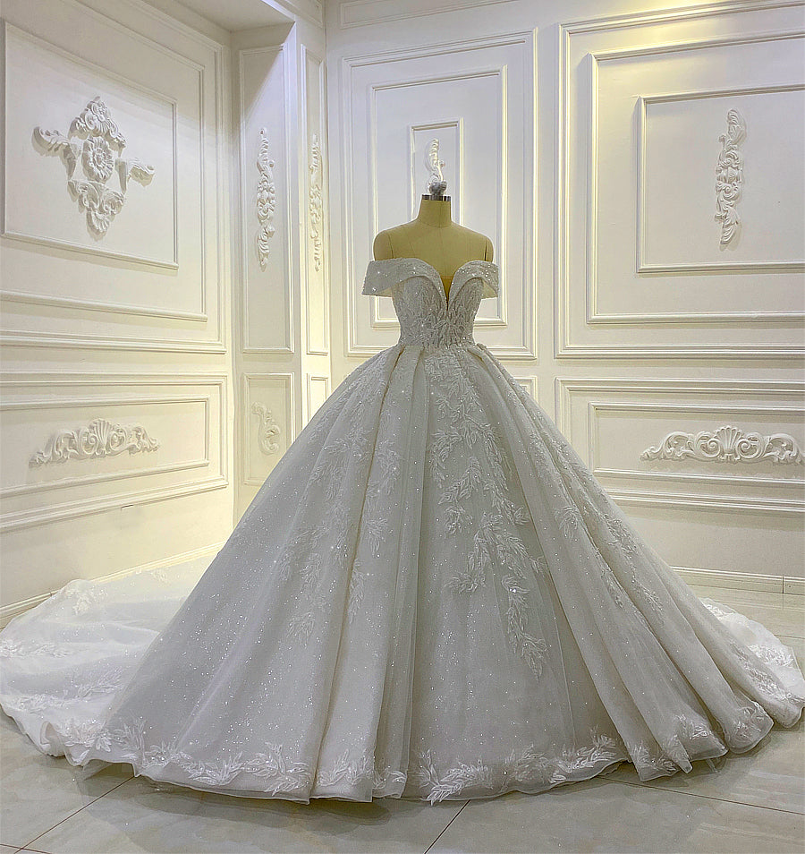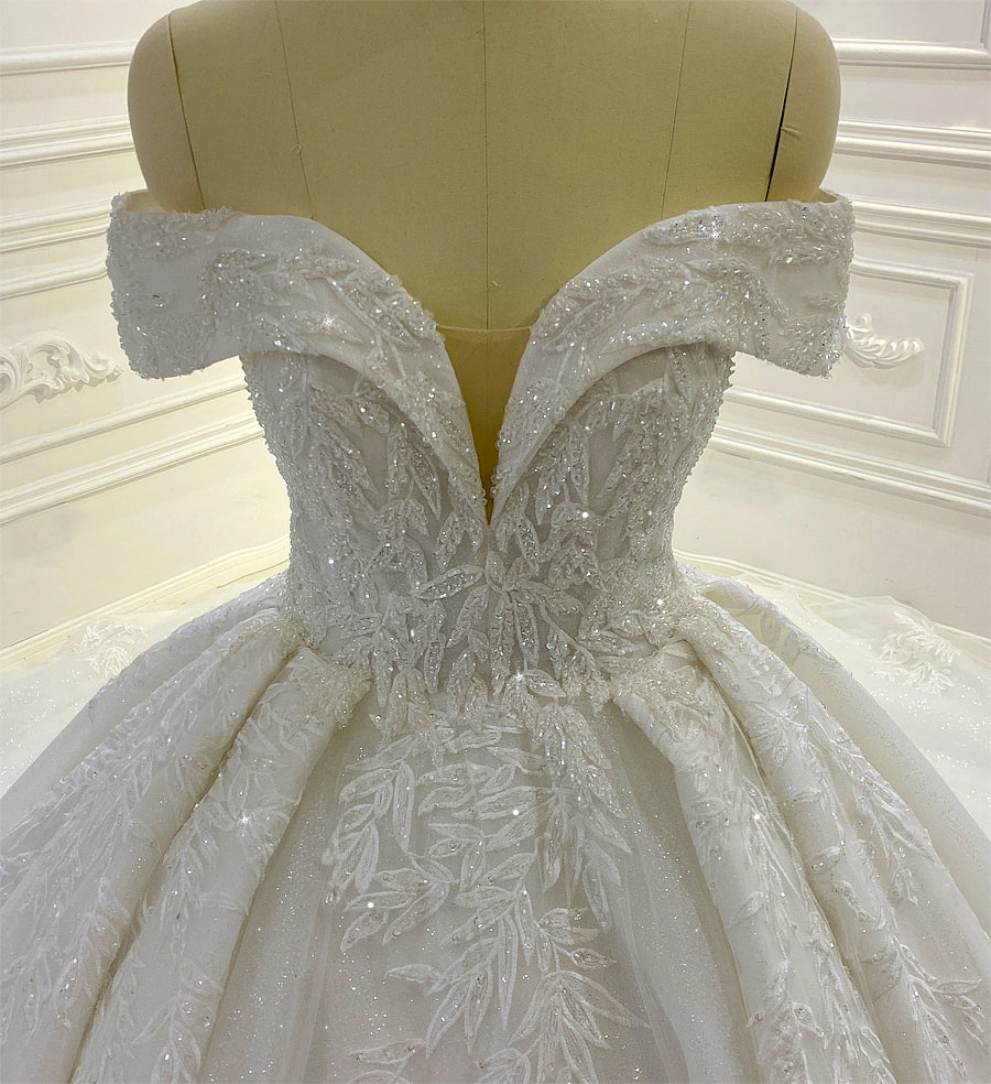 Off shoulder Long Tail lace high quality Dream Wedding Dress